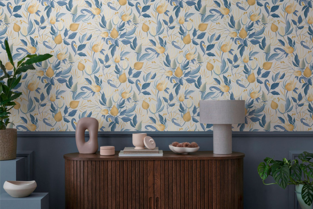 Hálószobában vagy nappaliban hangsúlyfalként alkalmazva friss, légies hangulatot