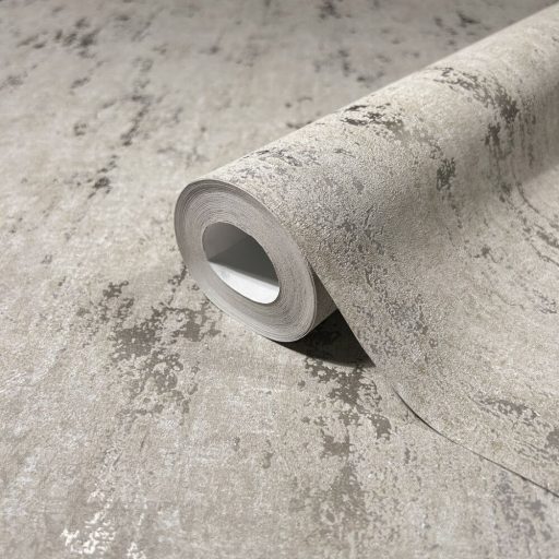 A Shabby sztárja! Fémes kiemeléssel díszített strukturált koptatott minta bézs szürke szürkésbézs és ezüst tónus tapéta