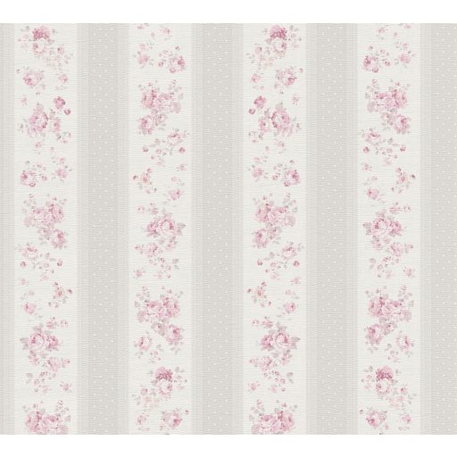 A romantika legszebb lapjaiból! Csíkos rózsás minta pöttyökkel és csipkével fehér szürke és rózsaszín tónus tapéta