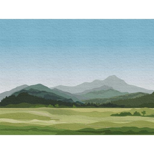 AS-Creation Metropolitan Srories the Wall 38298-1 Natur Grafikus Hegyvidéki táj téglafal háttéren kék fehér szines falpanel