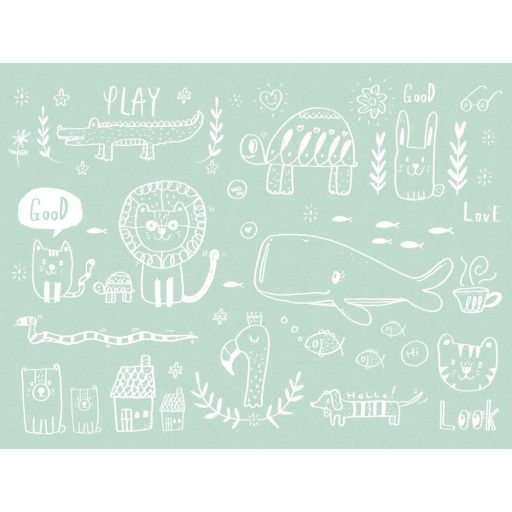 AS-Creation Metropolitan Srories the Wall 38304-1 Gyerekszobai Állati gyerekrajzok zöld fehér falpanel