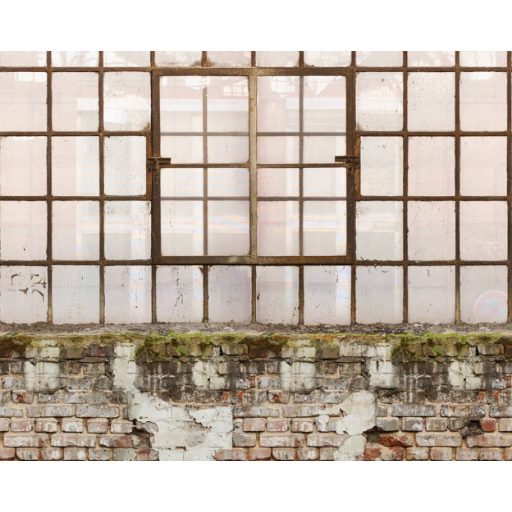 Abszolút Ipari! Elhagyott gyárcsarnok - mohásodó téglafal nagy ablakokkal krém bézs barna vörös és zöld tónus falpanel