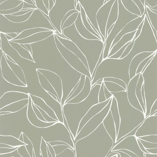 Ágak levelek sziluettje grafikus minta szürkészöld krémfehér tapéta