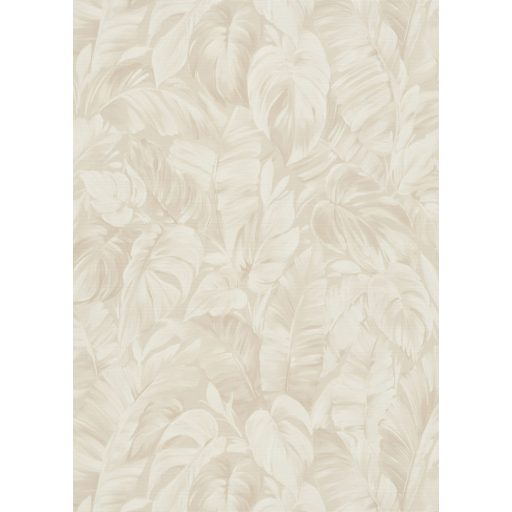 Akvarell festésű buja trópusi lombok levélzete finom fényben krém és bézs tónus tapéta