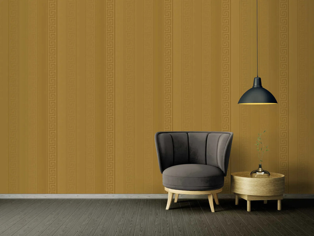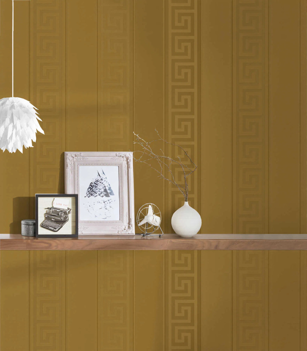 Tipp : A klasszikus görög fríz motívum arany árnyalataiban pompázik ezen a luxus tapétán.