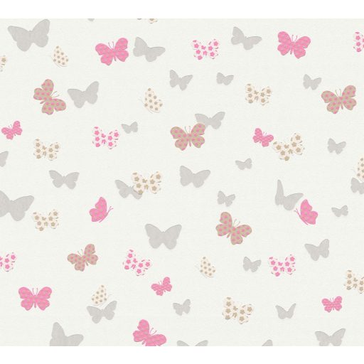 As-Creation Attractive 36933-2 Natur szines pillangók törtfehér ezüst pink szines fénylő mintarészletek tapéta