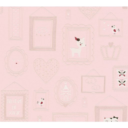 As-Creation Boys and Girls 6, 36991-2 Gyerekszobai motívumok képkeretben rózsaszín fehér piros fekete csillogó részletek tapéta