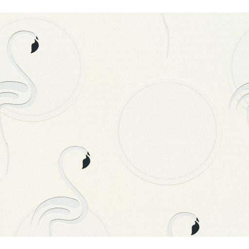 As-Creation Boys and Girls 6, 36998-1 Gyerekszobai flamingó motívum fehér szürke fekete ezüst csillogó részletek tapéta