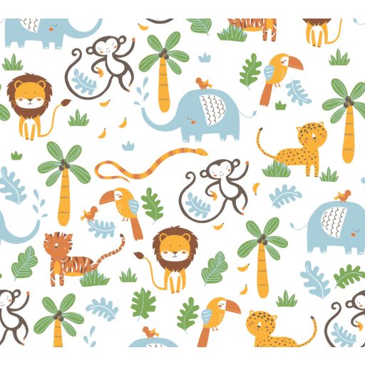As-Creation Little Love 38115-2 Gyerekszobai a dzsungel állatai fehér szines tapéta