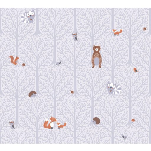 As-Creation Little Love 38119-1 Gyerekszobai Natur erdei állatok fehér szürke barna vörös tapéta
