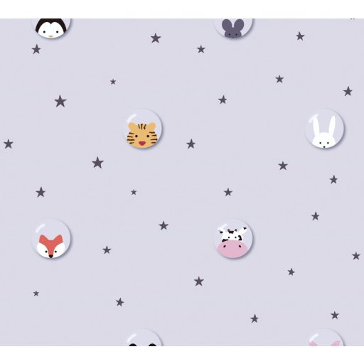 As-Creation Little Love 38143-1 Gyerekszobai Állatok buborékban csillagos háttéren szürkés rózsaszín fehér fekete rózsaszín tapéta