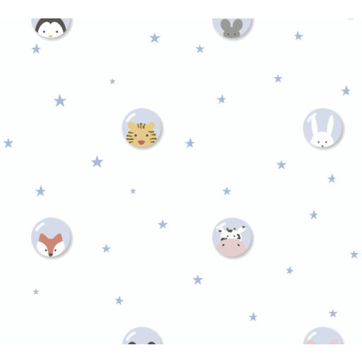As-Creation Little Love 38143-3 Gyerekszobai Állatok buborékban csillagos háttéren fehér kék szines tapéta