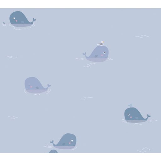 As-Creation Little Love 38144-1 Gyerekszobai Sirály a cetek tengerében szürke szürkéskék kék sárga tapéta