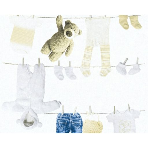 As-Creation Little Stars 35844-1 száradó ruhák és mackó fehér bézs kék tapéta