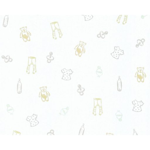 As-Creation Little Stars 35845-2 Teddy és baba holmik fehér arany ezüst tapéta