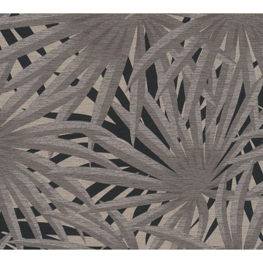 As-Creation Metropolitan Stories II, 37861-2 Natur Trópusi stilizált pálmalevelek szürke árnyalatok bézs fekete fémes csillogó hatás tapéta