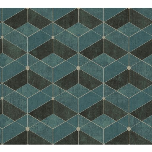 As-Creation Titanium 3, 38202-3 Geometrikus grafikus 3D zöld árnyalatok antracit arany tapéta