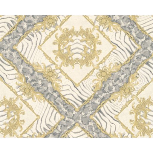 As-Creation Versace 3, 34904-2 zebracsík alapú dísítőminta krém bézsarany ezüststürke tapéta