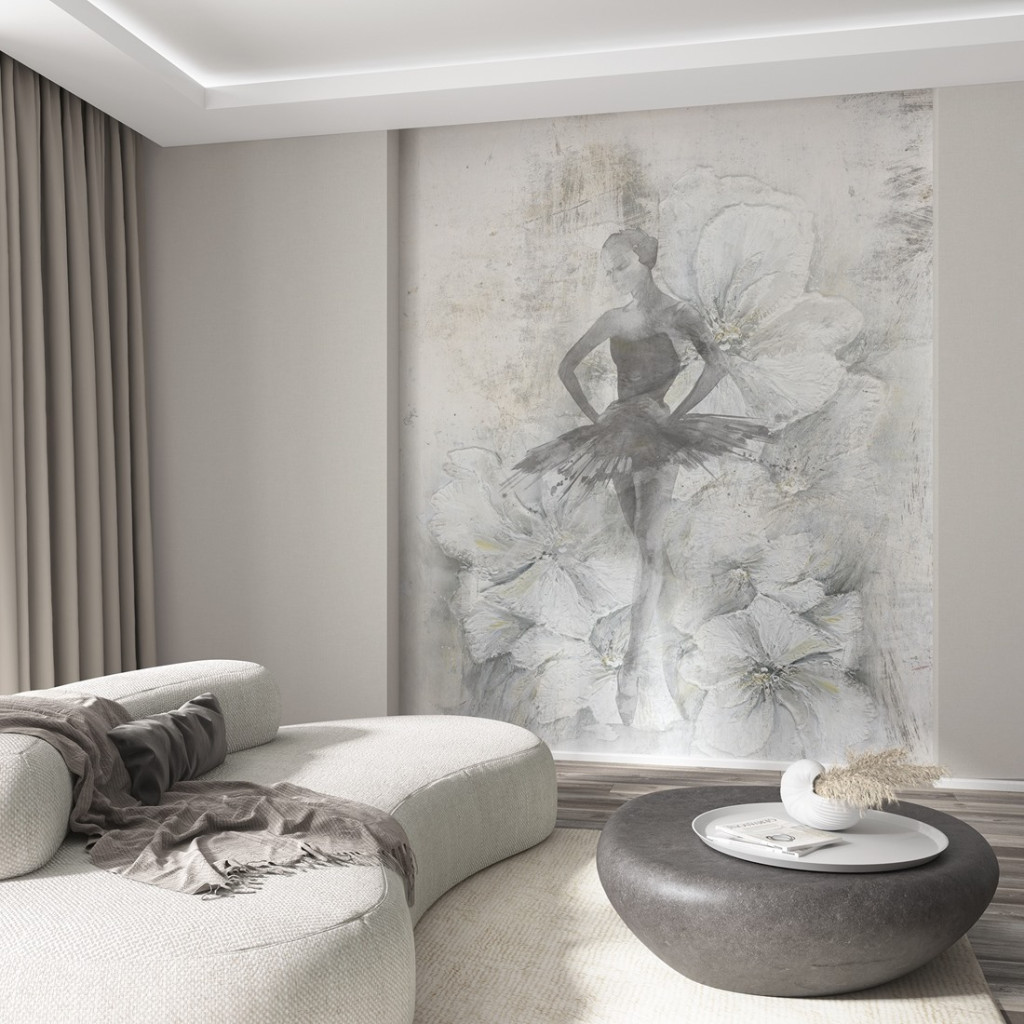 Tipp : Ezüstfehér és kopott krétaszürke alapon balerina spicccipőn egyensúlyozva
