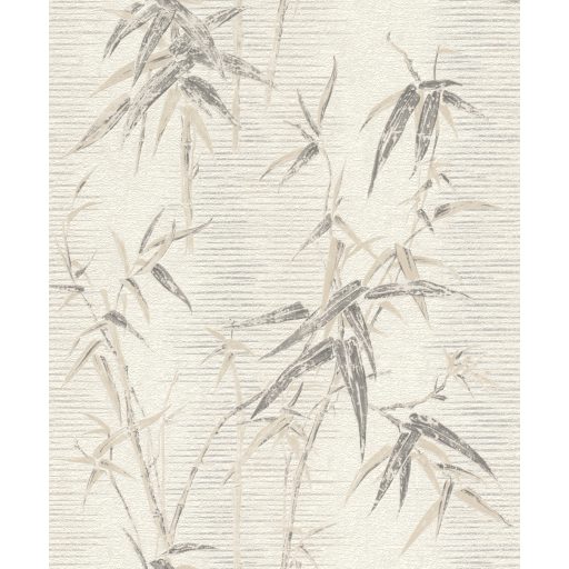 Bambuszmotívum természetes szépségében texturált háttéren szürkésfehér bézs sötétszürke ezüst tapéta