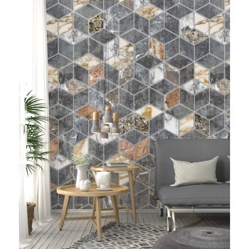 Behang Expresse Digital AK1054 Geometrikus 3D márvány oldalú kockák halmaza szürke barna terra digitális nyomat