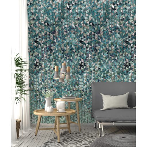 Behang Expresse Digital AK1058 Geometrikus háromszögek halmaza kék türkiz bézs barna fehér fekete digitális nyomat