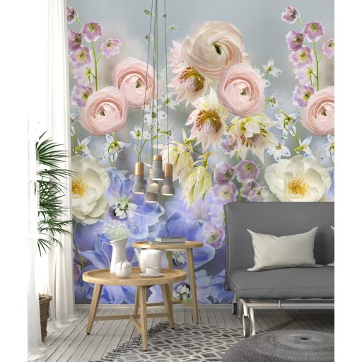 Behang Expresse Digital AK1060 Natur nagyformátumú stilizált virágok szürke rózsaszín kék szines digitális nyomat