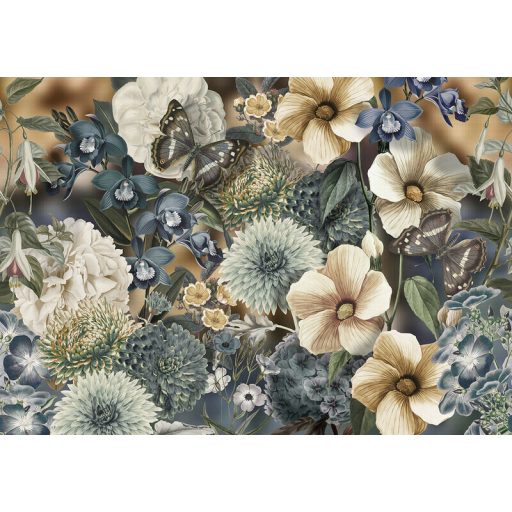 Behang Expresse Floral Utopia INK7576 EDEN BLUES Virágos az éden virágpompája pillangókkal bézs világoskék kék barna falpanel