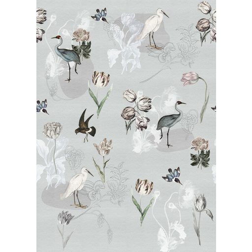 Behang Expresse Floral Utopia INK7587 DUTCH MEADOWS BLUE Natur németalföldi természeti kép szürke kék zöld rózsaszín piros fehér falpanel