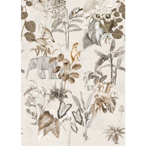Behang Expresse Floral Utopia INK7590 LUANG PRABANG NEUTRAL Natur laoszi dzsungel életkép elefántokkal fehér szürke bézs barna falpanel