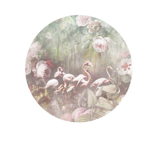 Behang Expresse Floral Utopia INK7610 FLAMINGO FOUND LIGHT Flamingók dús trópusi virág környezetben pezsgőszín zöld menta puderrózsaszín falpanel