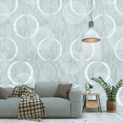 Behang Expresse Timeless INK7155 CIRCLING COLOR Grafikus design óriás körök kék zöldeskék fehér szürke falpanel