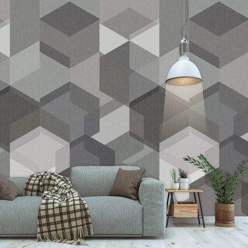 Behang Expresse Timeless INK7175 HAXA DARK Geometrikus 3D sík - hatszögek és térbeli elemek - kockák halmaza szürke szürkéslila fehér szürkészöld falpanel