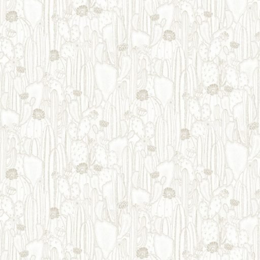 Casadeco Botanica 85920298 CACTACEAE Botanikus kaktuszültetvény fehér bézs szürkésbézs bézsarany fémes kiemelések tapéta