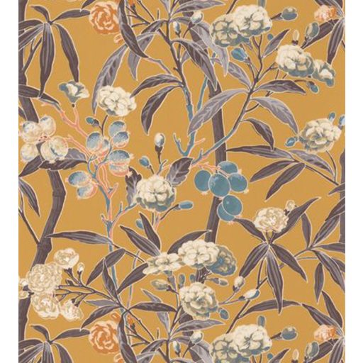 Casadeco Cuba 84332320 HABANA JAUNE Natur egzotikus virágos szőlő aranysárga kék barna szines tapéta