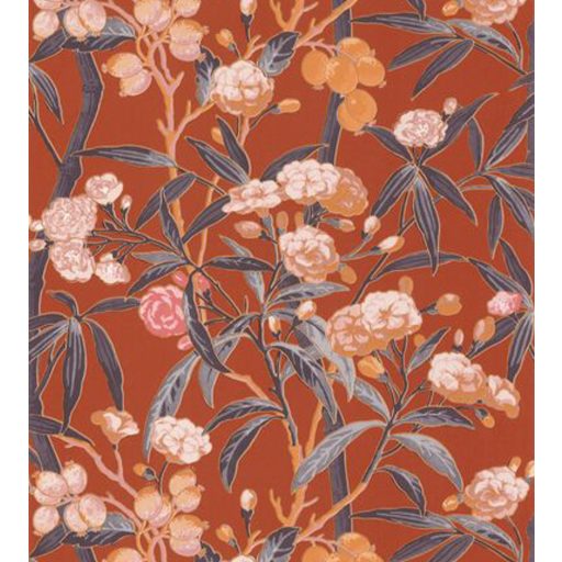Casadeco Cuba 84333417 HABANA ORANGE Natur egzotikus virágos szőlő vérnarancs/terrakotta szines tapéta