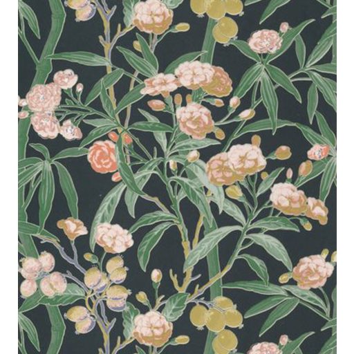 Casadeco Cuba 84337505 HABANA VERT FONCE  Natur egzotikus virágos szőlő antracit sötétzöld szines tapéta