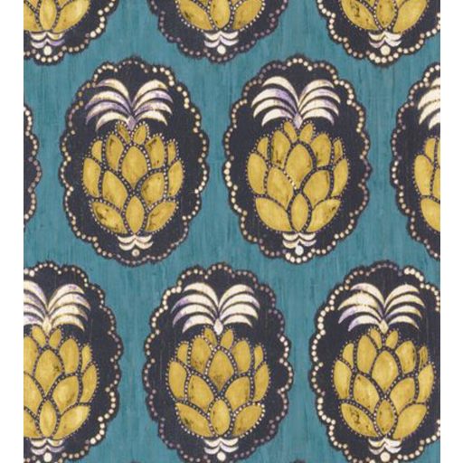 Casadeco Cuba 84356404 PINA TURQUOISE Natur trópusi dekoratív ananász motívum türkiz aranysárga felete fehér tapéta