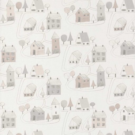 Casadeco Happy Dreams 82841329 SMALL VILLAGE GRIS BEIGE falu krémfehér bézs szürke tapéta