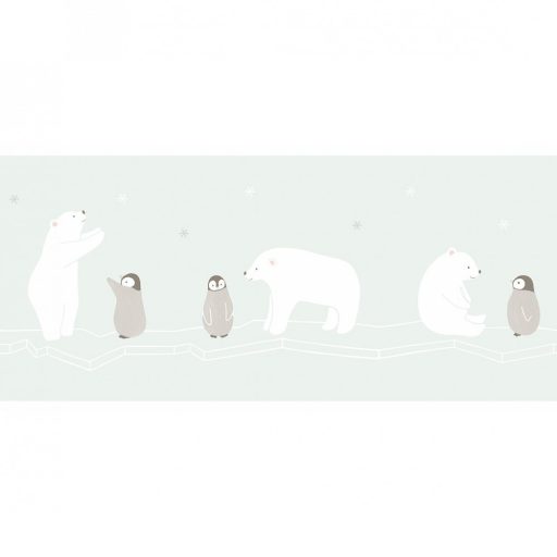 Casadeco Happy Dreams 82866234 FRISE POLAR BEAR BLUE jegesmedvék pingvinek kék fekér szürke bordűr