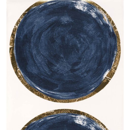 Casadeco Idylle 83816506 VOLTA BLUE/OR design művészi geometrikus óriás körök fehér mélykék csillogó arany szegély tapéta