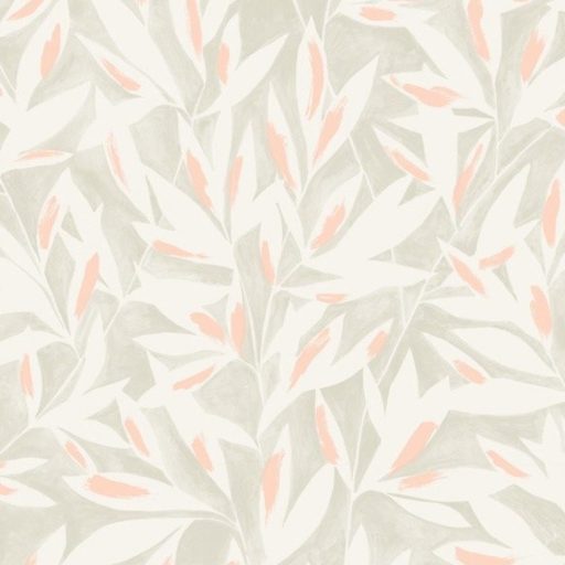 Casadeco Jardins Suspendus 85240155 TAMARIS Natur Sziluett levélmintázat bézs/szürkésbézs krémfehér korallszín tapéta