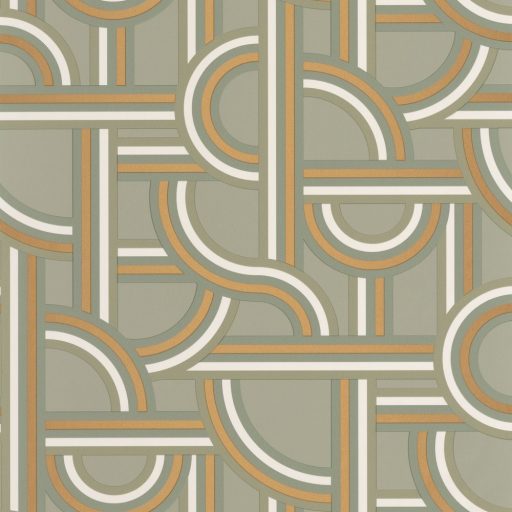 Caselio Labyrinth 102127022 IMPASS Geometrikus Mindenhova és sehova! zsákutcábó torkolló grafikus utak mandulazöld zöld fehér arany tapéta