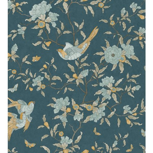 Casadeco Natsu 82137230 NARA etno virágok madarak smaradgzöld aranysárga barna világoskék tapéta