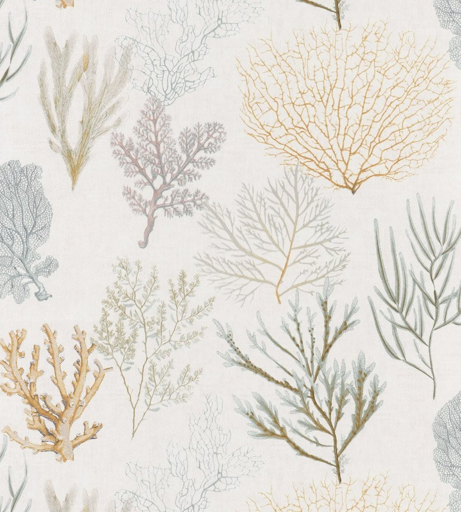 Casadeco Rivage 83972127 CORAIL Natur Különböző korallfajták megjelenítése törtfehér aranysárga kék szürke zöld tapéta
