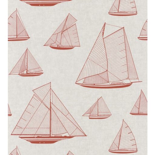 Casadeco Rivage 84028205 ARMADA Natur Grafikus Stilizált vitorlásflotta mint egy műszaki vázlat bézs piros/vörös tapéta