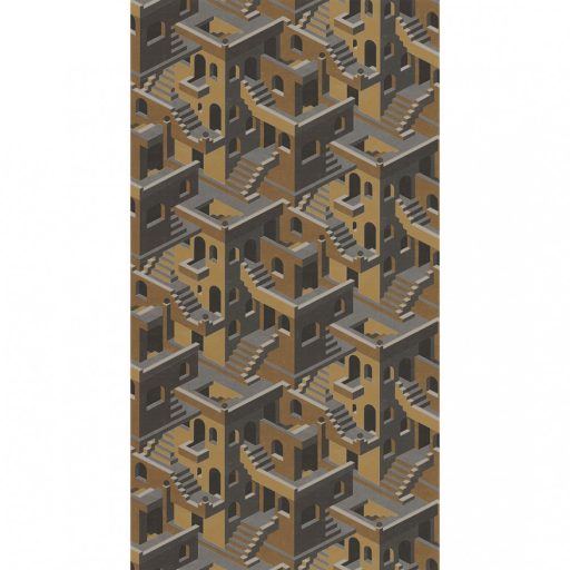 Casadeco Utopia 85119241 OCRE/NOIR Grafikus 3D házak szoros halmaza okkersárga szürke fekete arany tapéta