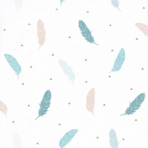 Caselio Girl Power 100776613 Gyerekszobai natur szines tollak fehér türkiz arany rózsaszín tapéta