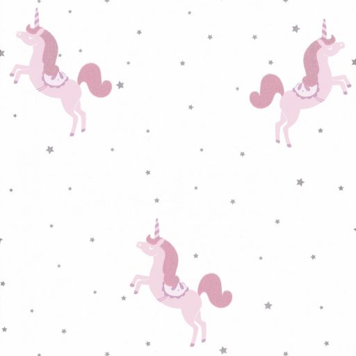 Caselio Girl Power 100795402 Gyerekszobai natur egyszarvúak csillagok fehér rózsaszín pink ezüst csillogó hatás tapéta