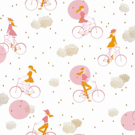 Caselio Girl Power 100844928 Gyerekszobai Hobby kerékpározó lányok fehér rózsaszín pink arany felhők tapéta
